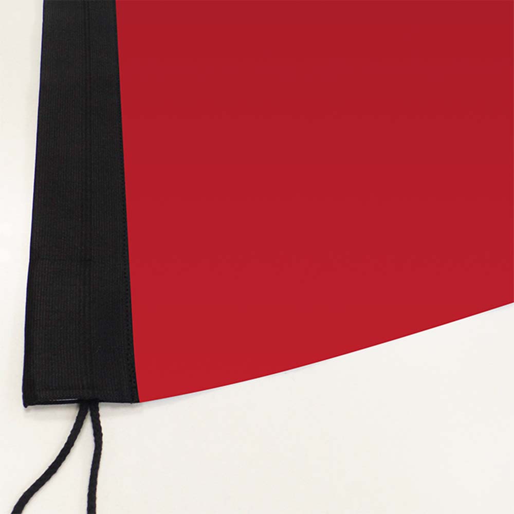 Die Fahne besteht aus 110 g/m² Fahnenstoff und einer Sperrschicht bei der das Besatzband als Gummiband in schwarz, weiß oder als bedruckter Stoffsaum erhältlich ist. Die Fahne ist 4/4-farbig, beidseitig bedruckbar und kann individuell bedruckt werden.